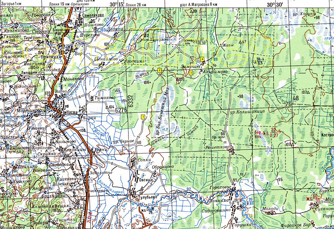 нас переместили в лес восточнее железной дороги Новосокольники-Дно, несколько севернее ст. Насва. Над лесом непрерывно летали немецкие ночные бомбардировщики. При демаскировке быстро подлетали, сбрасывали мелкие бомбы, минометные мины. Затем следовали артиллерийские налеты. Эти бомбардировщики пересекали передовую с выключенными моторами, тихо и очень низко проплывая в ночном небе. Затем над лесом периодически включали моторы. По опушке леса проходила наша оборона. Нашей бригаде предстояло сменить оборонявшееся здесь подразделение. Немецкая передовая позиция против нас между станциями Насва и Ягодкино проходила по восточному берегу р.Смердель.