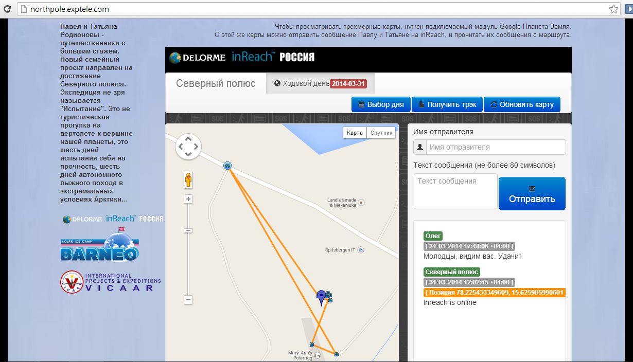 Пока Паша пишет смски, но как вылетят на Барнео, единственная обещедоступная связь с ними останется вот: