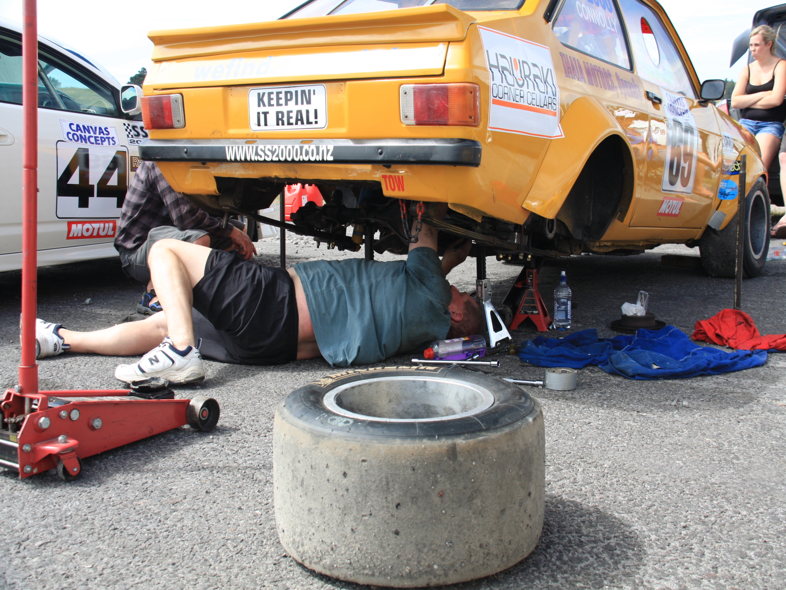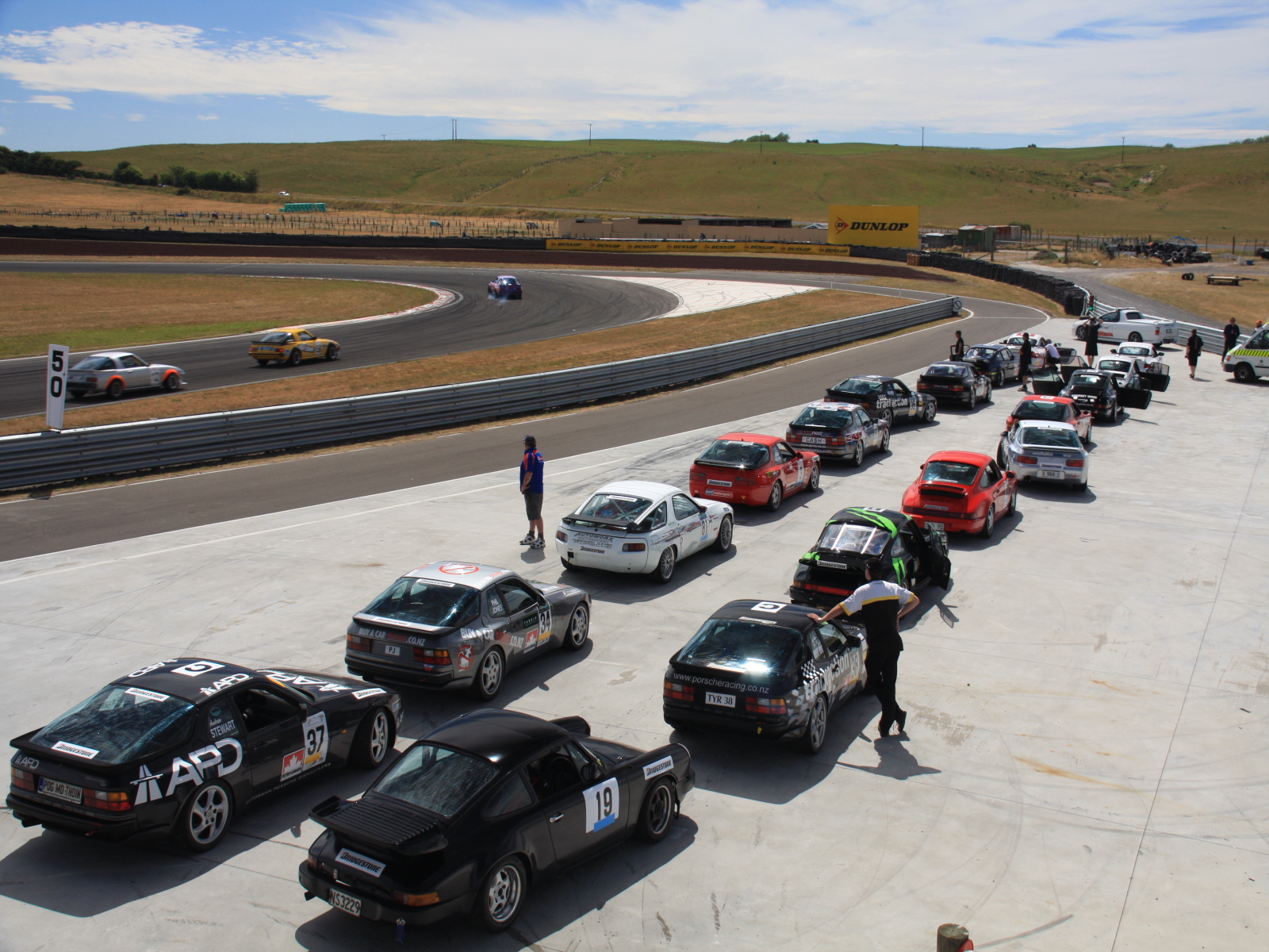 После прыжка, в Таупо решено было посетить автогонки,во ребята я вам доложу где организация и простор для слабых разумом , трек находится за городом и по размеру как трассы так и боксов впечатляет, гонки проводят два дня, в разных классах,все машины часные, в Новой Зеландии культ порше, и американских монстров с большим литражом двигателя, а так же класс мини, это очень красиво, и шумно, по техзоне можно ходить СВОБОДНО, наблюдать за работой техников,как правило это папа и дед а сан за рулем, дети бегают везде, но порядок и безопасность чувствуется везде.ОМОНа и вахтеров нет, билет на два дня стоит 14 дол с машины,заезжаешь на парковку,сколько чел в машине неважно.
