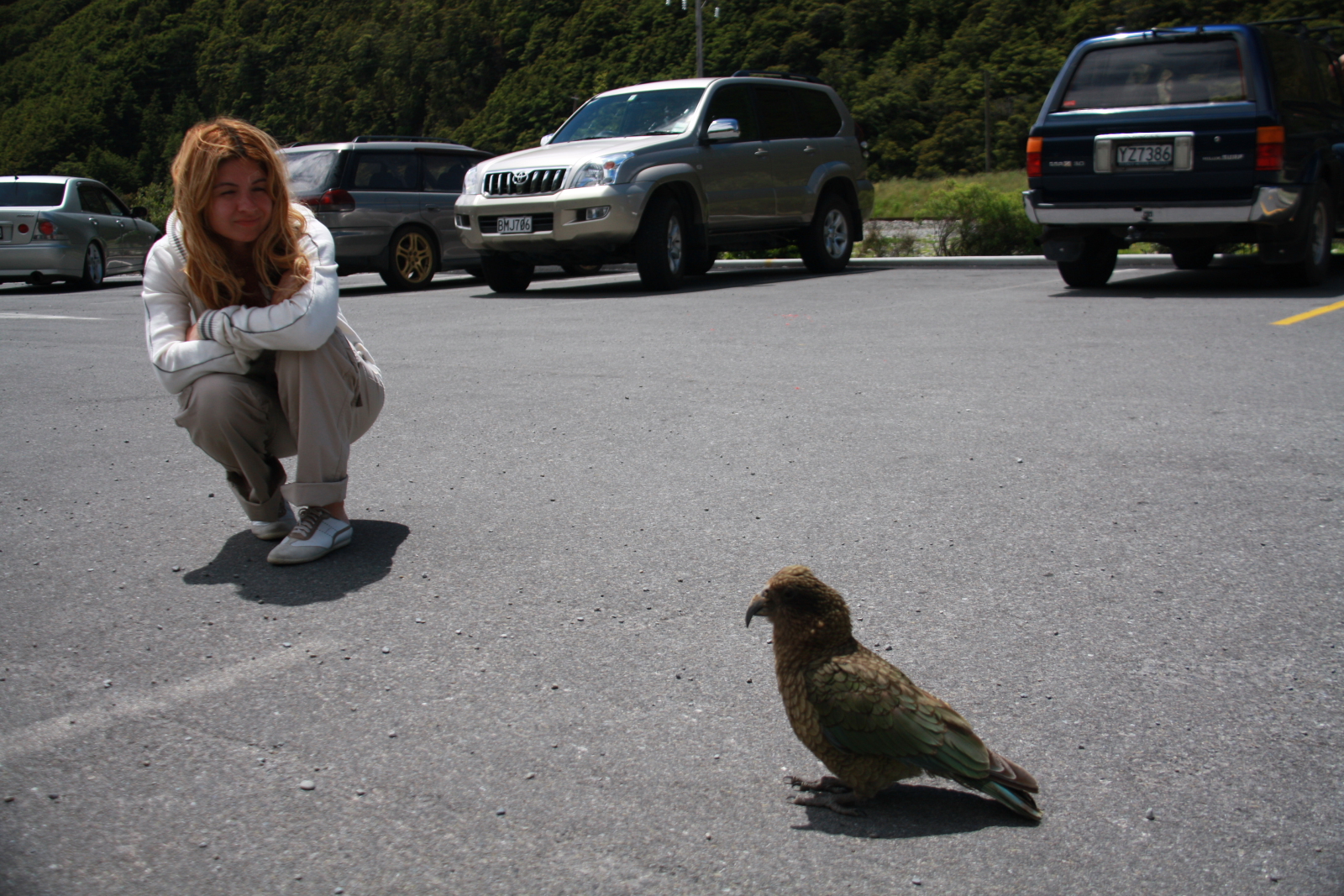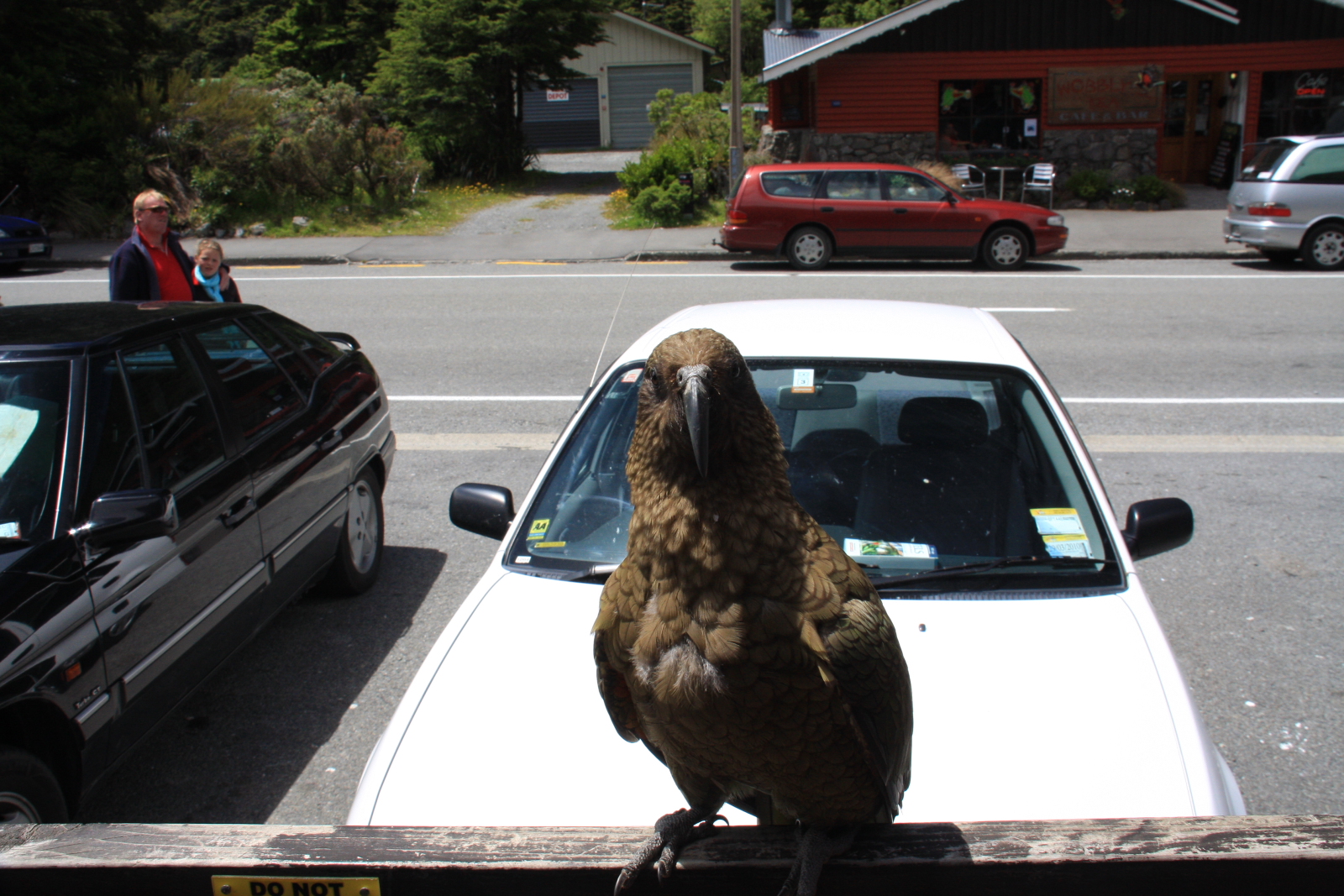 На перевале Артурс пасс, в деревне живут самые наглые попугаи Кеа(альпийские попугаи),эти птицы размером с курицу любят попрошайничать и своим здоровым клювом запрсто могут разобрать вам дворники на машине или сташить в кафе на улице ваш завтрак...