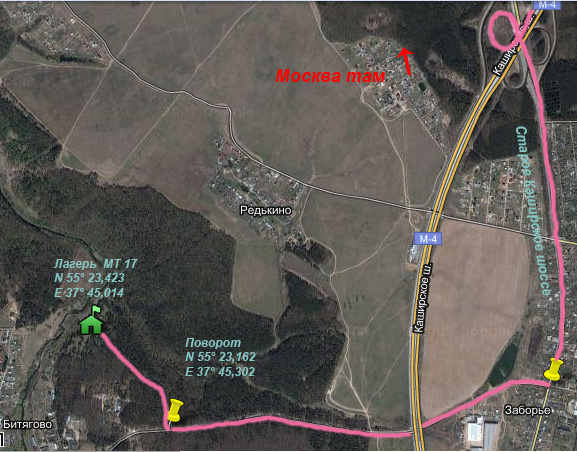 30 октября 2010 года. Встреча в лагере в 10:00. Двигаемся по трассе М-4 Дон (ул. Липецкая). Примерно в 20км. От МКАД до развязки после моста над ЖД, сразу будет следующий мост, перед которым указатель: Направо г. Домодедово, налево "Аэропорт Домодедово" Проезжаете под мост и направо по указателю "Аэропорт Домодедово" Российская Международная школа+.", т.е. едете налево от трассы М-4 в сторону аэропорта. Далее прямо, населенный пункт Заборье, на 1-м светофоре прямо (налево на аэропорт не сворачивать). От светофора примерно через 200 м., поворот направо, напротив радиовышки(она слева от дороги и видно ее из далека). Далее прямо,примерно через 2км, будет поворот направо, справа будет указатель "Монастырь Серафимо-Знаменский скит". Далее дорога с асфальтовым покрытием уходит налево, вам прямо - на грунтовку. И через 700 метров вы в лагере.
