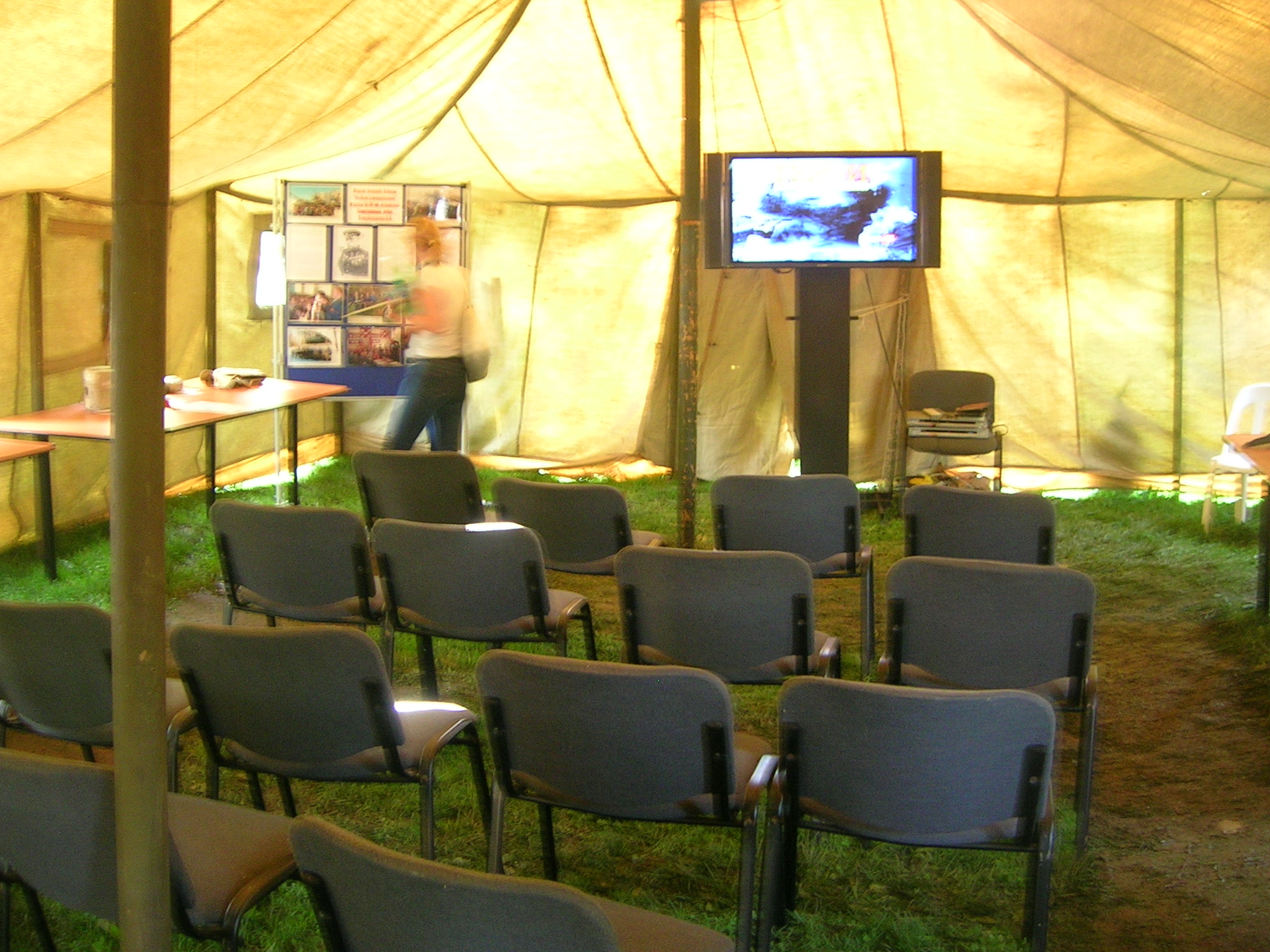 поднять одну сторону намёта и засунуть в соответствующие отверстия на крыше обе средние стойки палатки, предварительно надев на них сначала гребень, а затем и лямки внутреннего намёта;