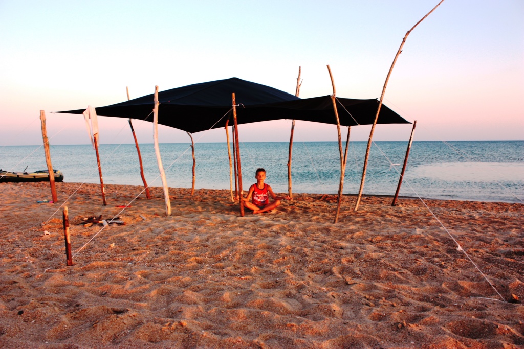 поставить подрамники; сначала подрамник привязывают к внутреннему намёту со стороны, обращенной в палатку; при этом один конец завязки завязывается с образованием петли, а другой конец оставляется длинным без петли, чтобы не развязался узел; оставшимися длинными концами завязок на внутреннем намёте и концами завязок на наружном намёте плотно связать между собой оконные вырезы одного и другого намётов;