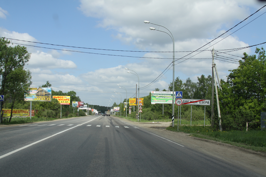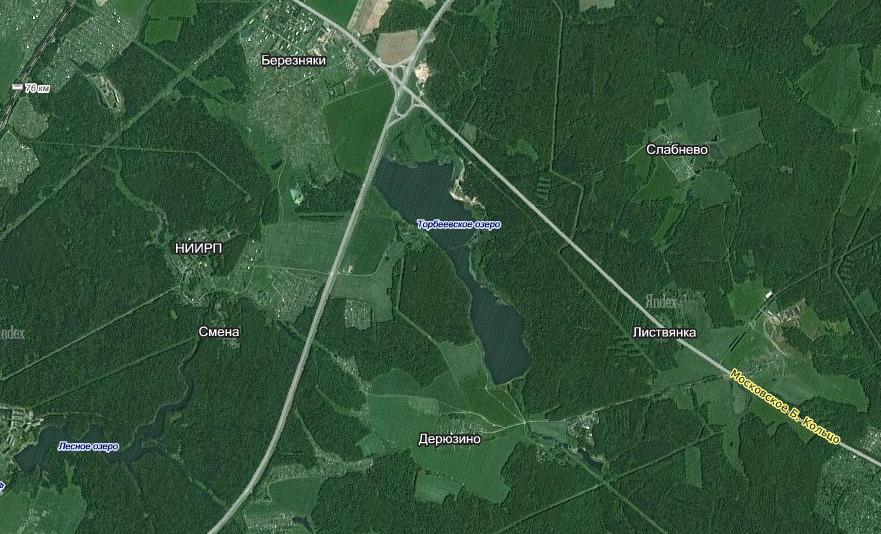 то, что видно через гугл - это три небольших озера с одной стороны которых шоссе метрах в пятиста, с другой - дачные/котеджные поселки.