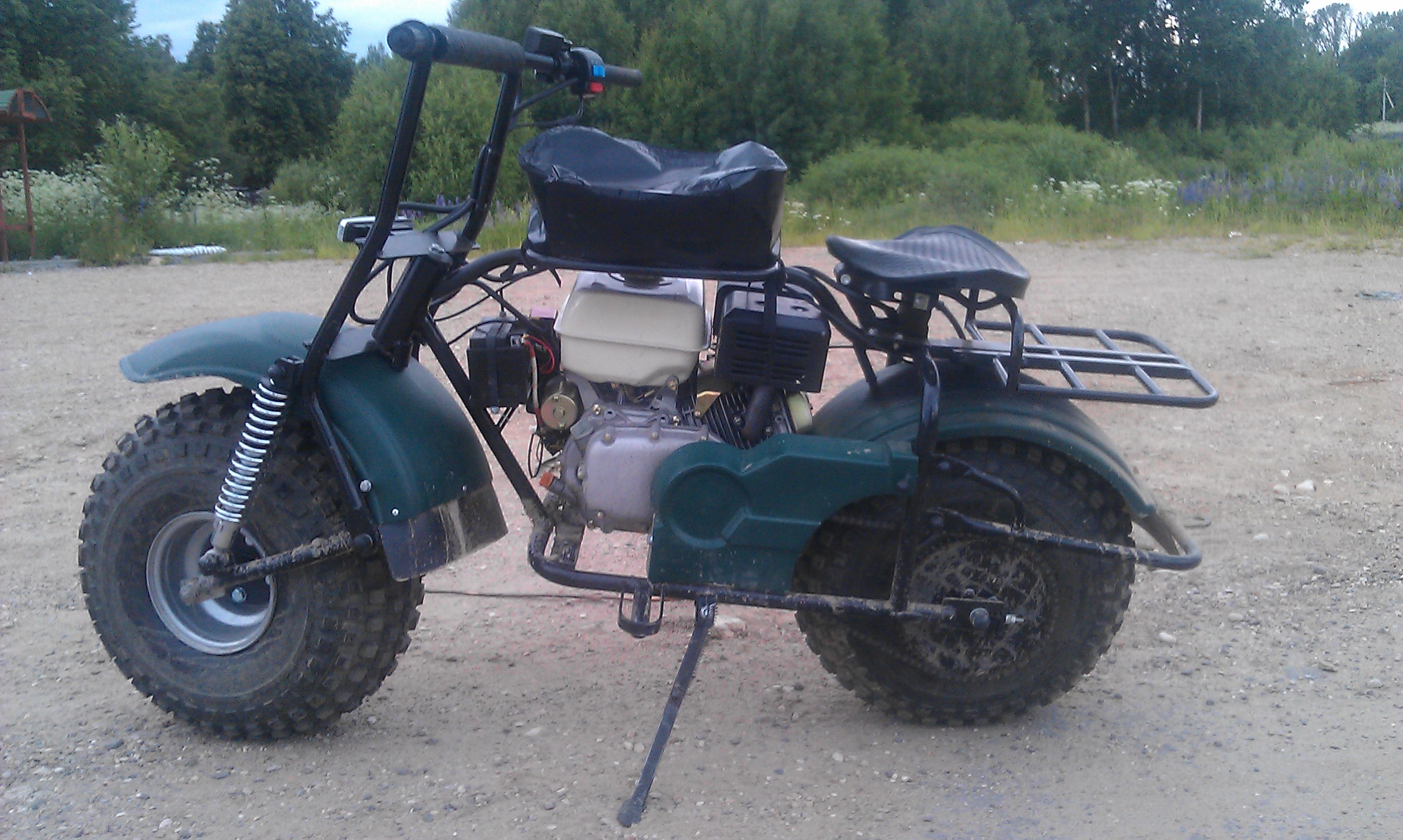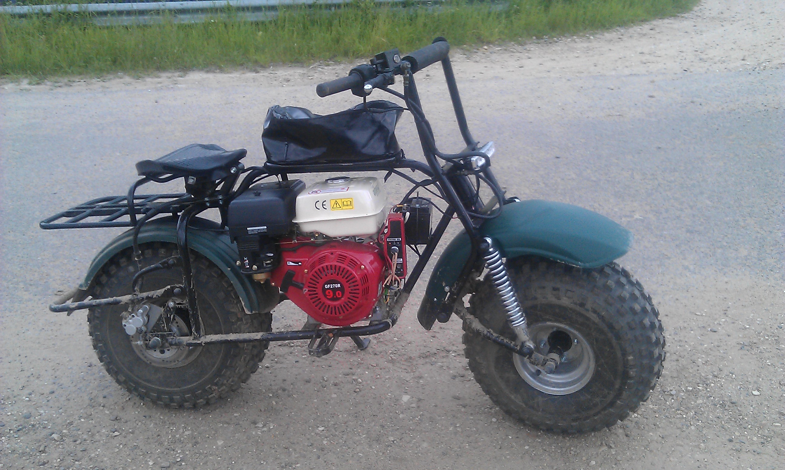А какой то Питерский завод выпускает такие эксперементальные вещи. Цена 60 т.р. Заводится как с электростартера от АКБ, так и со шнурка. У него на раме с левой стороны табличка с VIN приклепана. Регистрируется так же как квадрик.