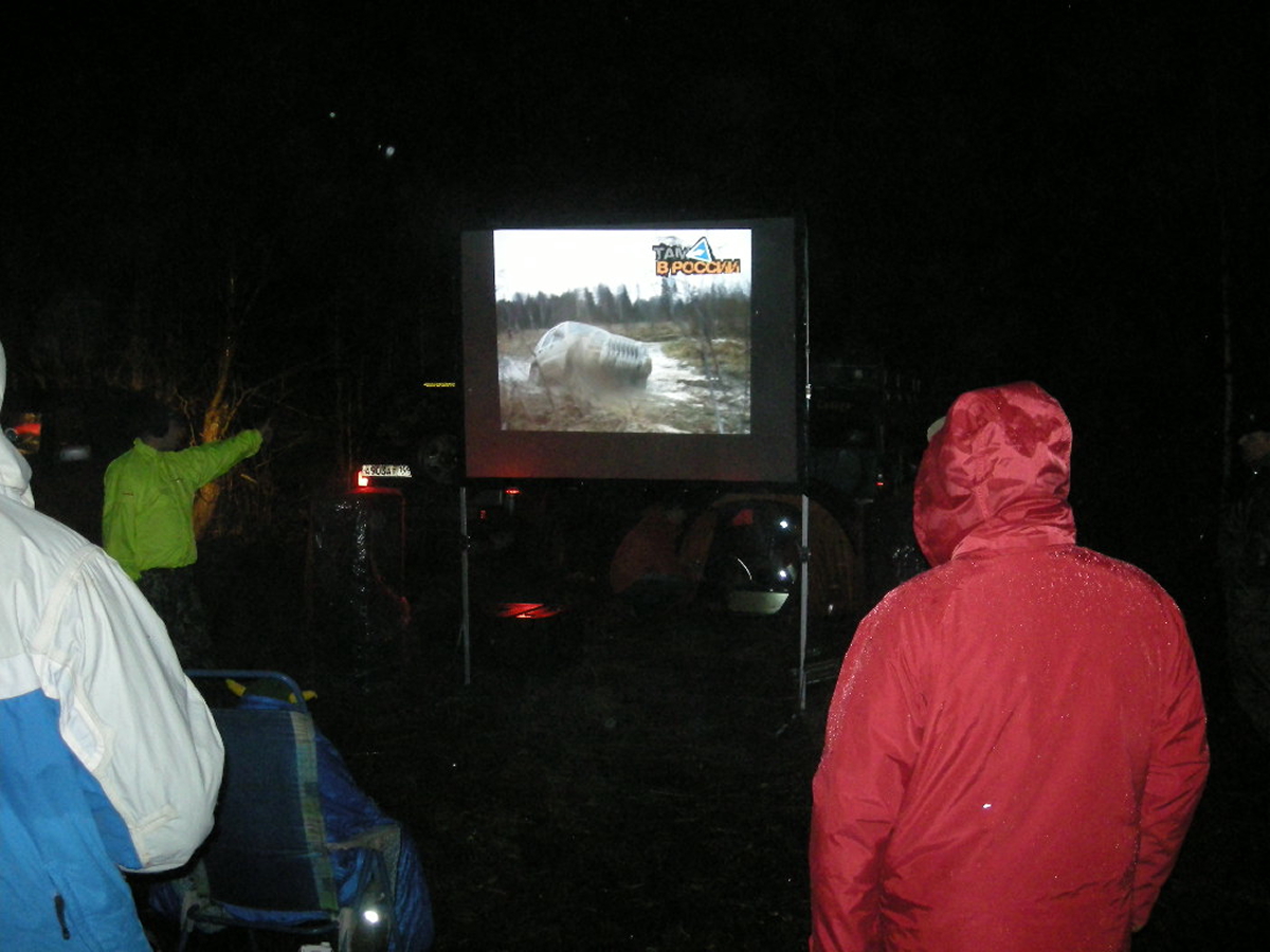 Появившись в лагере, экипаж сдает номерок, его утром выдали при выезде, орг пригласили всех в кинозал под открытым небом ( и так каждый день!) Супер ! с восьми вечера показывали короткие фильмы о путешествиях снятые самими участниками и присланные до поездки чухоргам,.. И тут всех удивил Пилот! У него был шашлык и мангал! Вообщем, пока ставили лагерь, разводили костер, Иван сделал нам шашлык! И мы неспешно вели разговоры у костра….