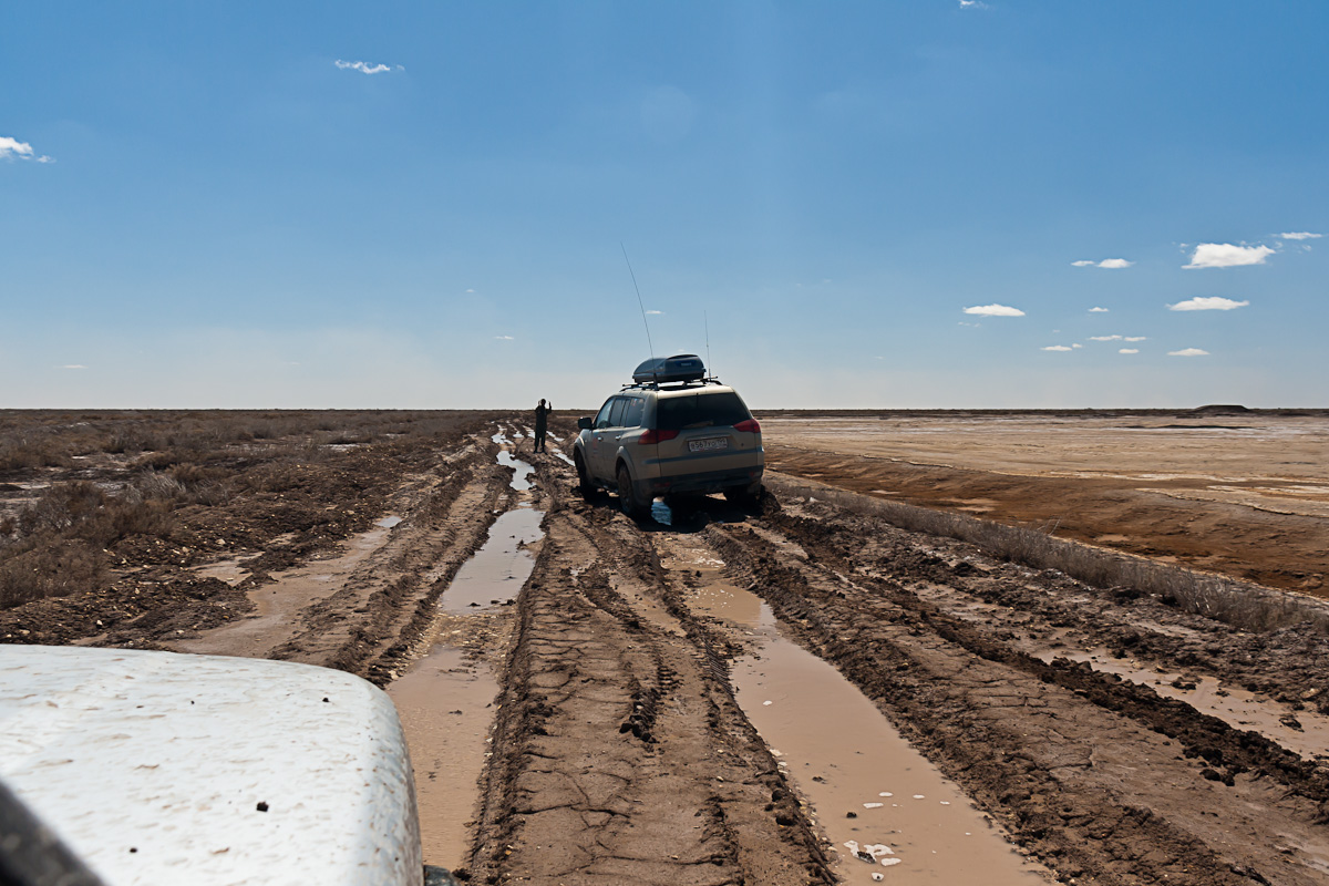 ok_escudo писал(а): спустились к морю, а поднимались уже в дождь, колесики уже пришлось хорошо травить, а 2 мая прошли по дну высохшего моря, солончак, потом заросли и перекати-поле, а потом хорошие такие колеи, на выходе попали в хорошую песчаную бурю, а к вечеру добрались до Хивы, где и упадем на дневку 3 мая, а потом пойдем в пустыню на Уч-Кудук.