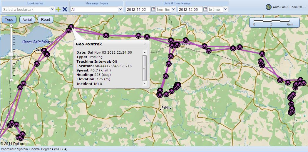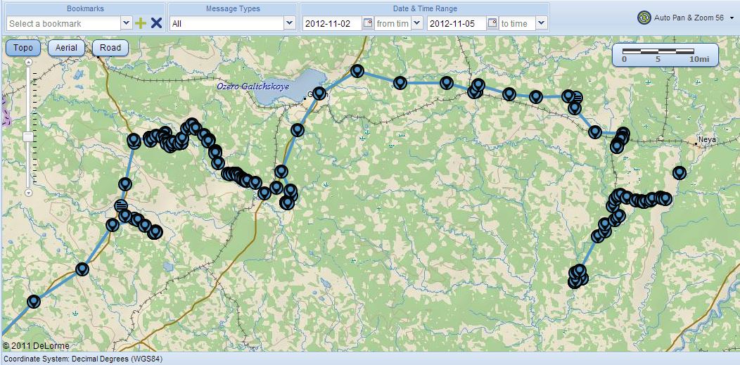 Местоположение экипажей отображается в режиме он-лайн при помощи двухстороннего спутникового пейджера и GPS трекера DeLorme inReach.