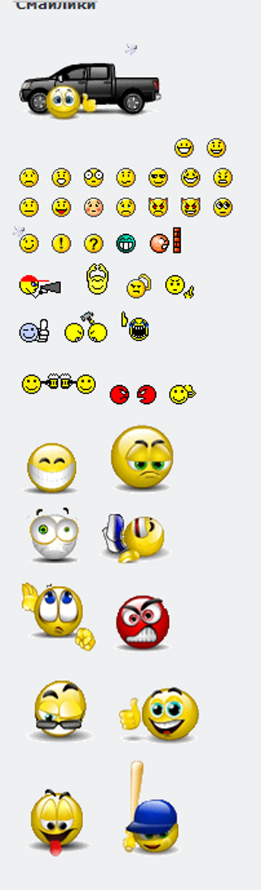 viacheslav писал(а):Смайлики починил. Если что не так - пинайте, исправлю