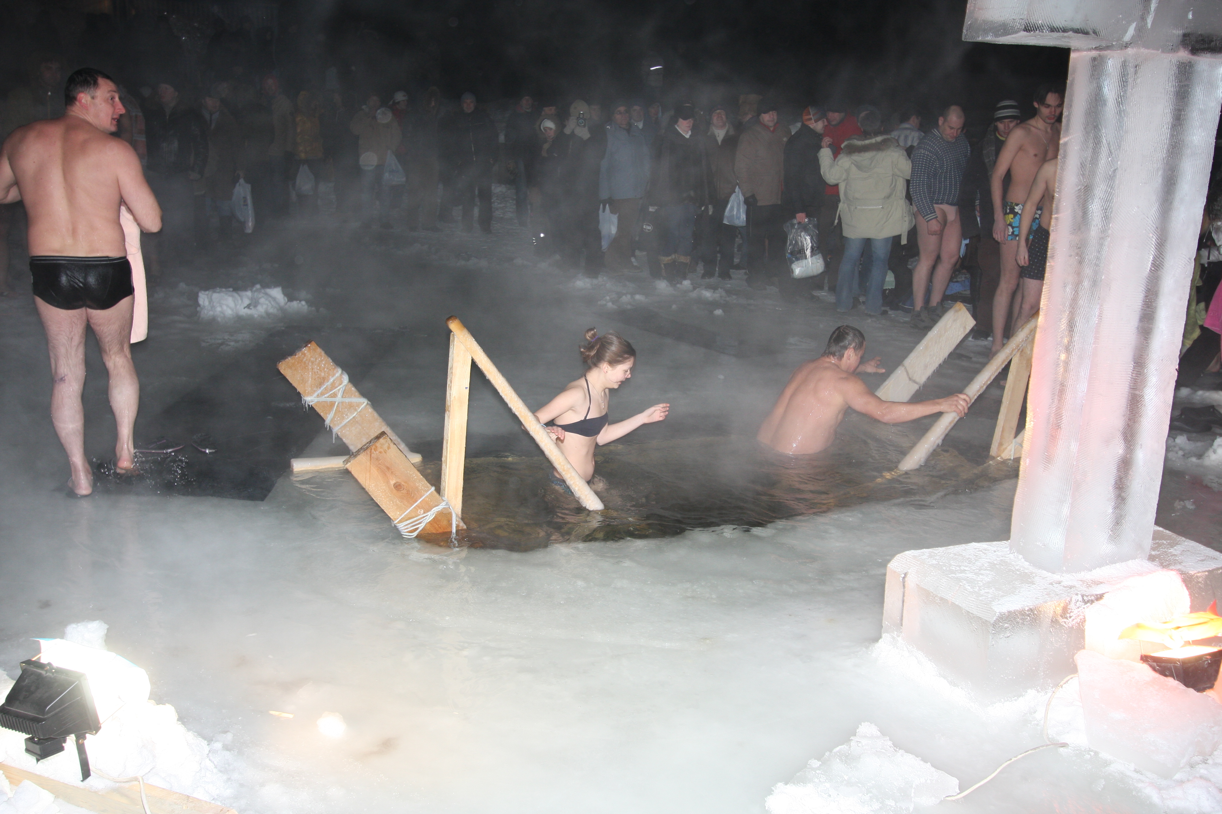 А мы со Светиком не полезли...тему подняли, а сами по постелям теплым :) На самом деле заболела я, а Тру просто стало без меня скучно подвиги совершать. А вообще, я собиралась у нас тут, по месту жительства, Мытищинский р-он, село Тайнинское есть такое. Я в местной газете читала призыв к желающим, там настоятель храма Благовещения Пресвятой Богородицы (меня в нем крестили, кстати) организует это дело по-взрослому....с палатками теплыми, молитвой над каждым окунающимся. Но что меня искренне потрясло, так это то, что окунаться надо было ТРИЖДЫ...по правилам там каким-то. Я и так не очень была уверена, что выживу, а трижды так вообще 100%-ый "генерал карбышев" :shock: